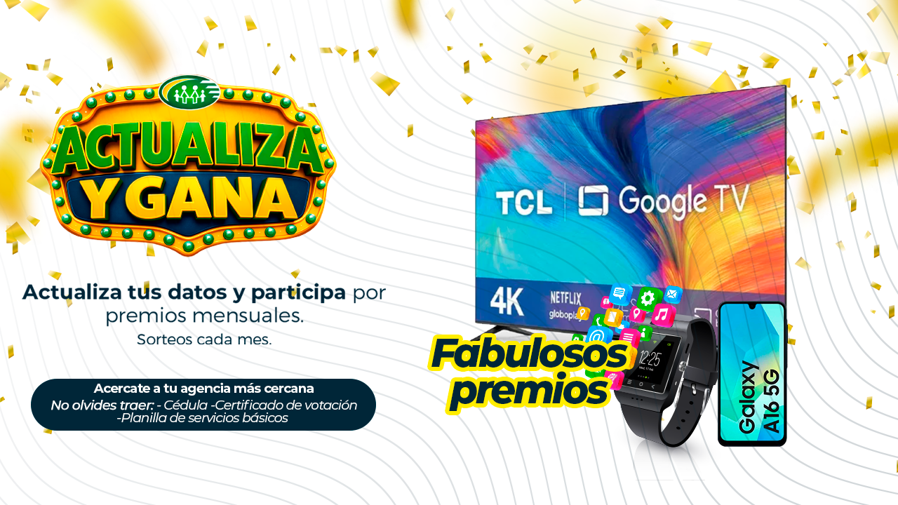 La campaña Actualiza y Gana se desarrollará del 09 de marzo al 29 de mayo, con el objetivo de mantener actualizada la información personal de nuestros socios y clientes, fortaleciendo así una comunicación segura, eficiente y alineada a la normativa vigente.